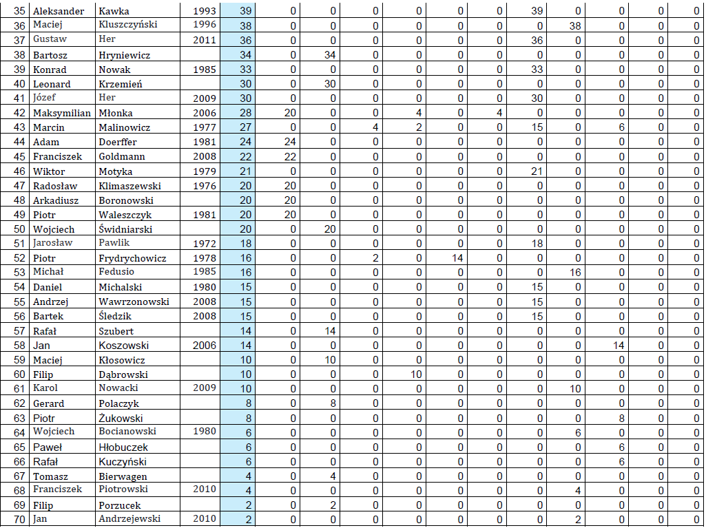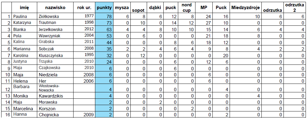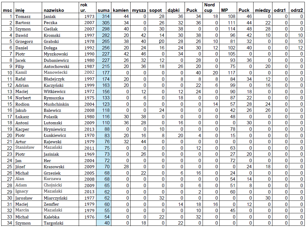 Ranking Pucharu Polski 2025 na 28.08.2025 Wyniki w poszczególnych kategoriach znajdziecie w plikach PDF do pobrani poniżej: PP25-Open K PP25-open M PP25-Masters M PP25-Grand Masters M PP25-U15 M PP25-U19 K PP25-U19 M
